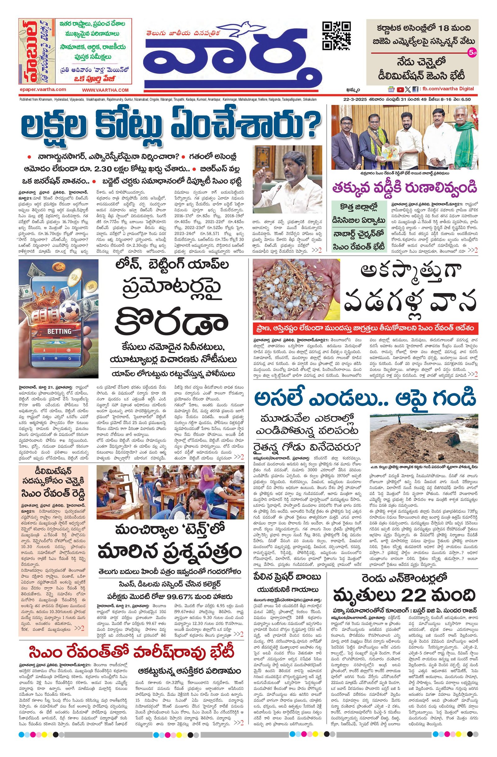 Telangana Main - 22 Mar 2025 - - Page 1