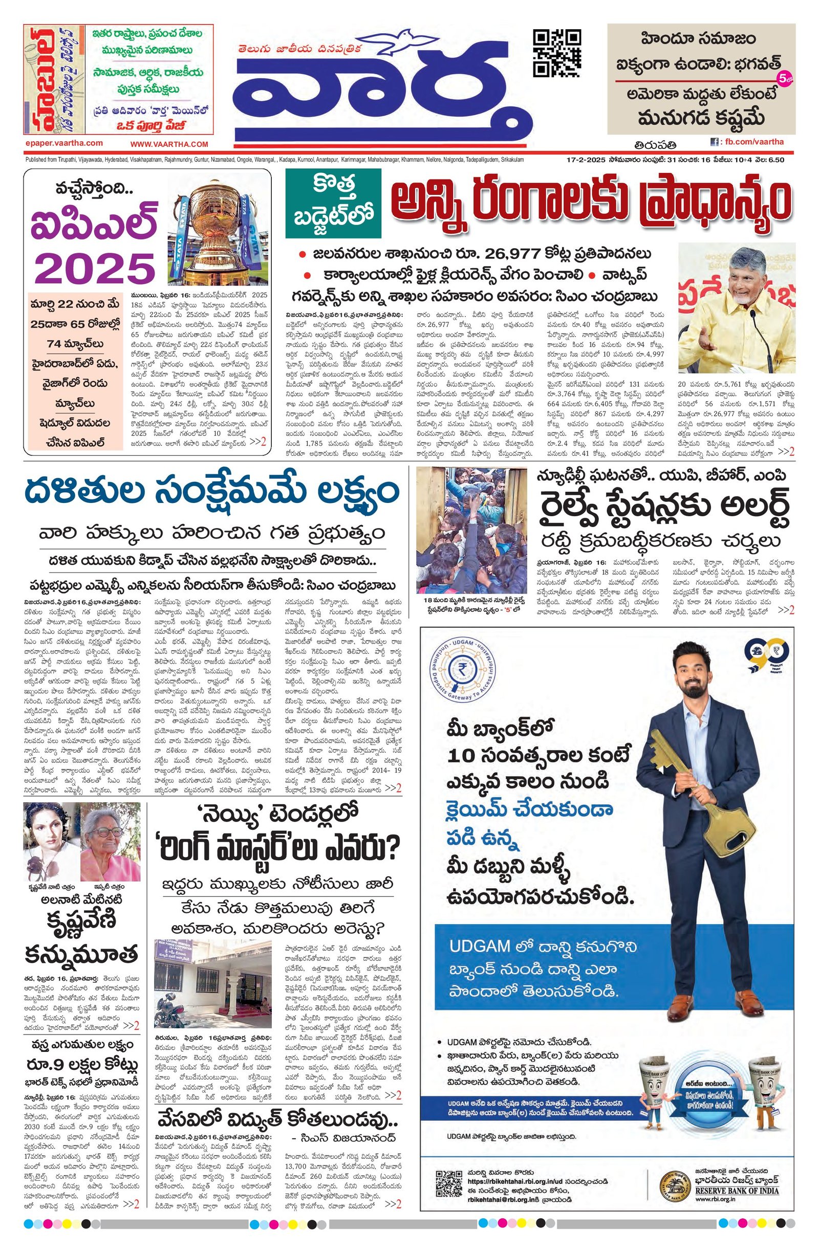 Tirupathi main - 17 Feb 2025 - - Page 1