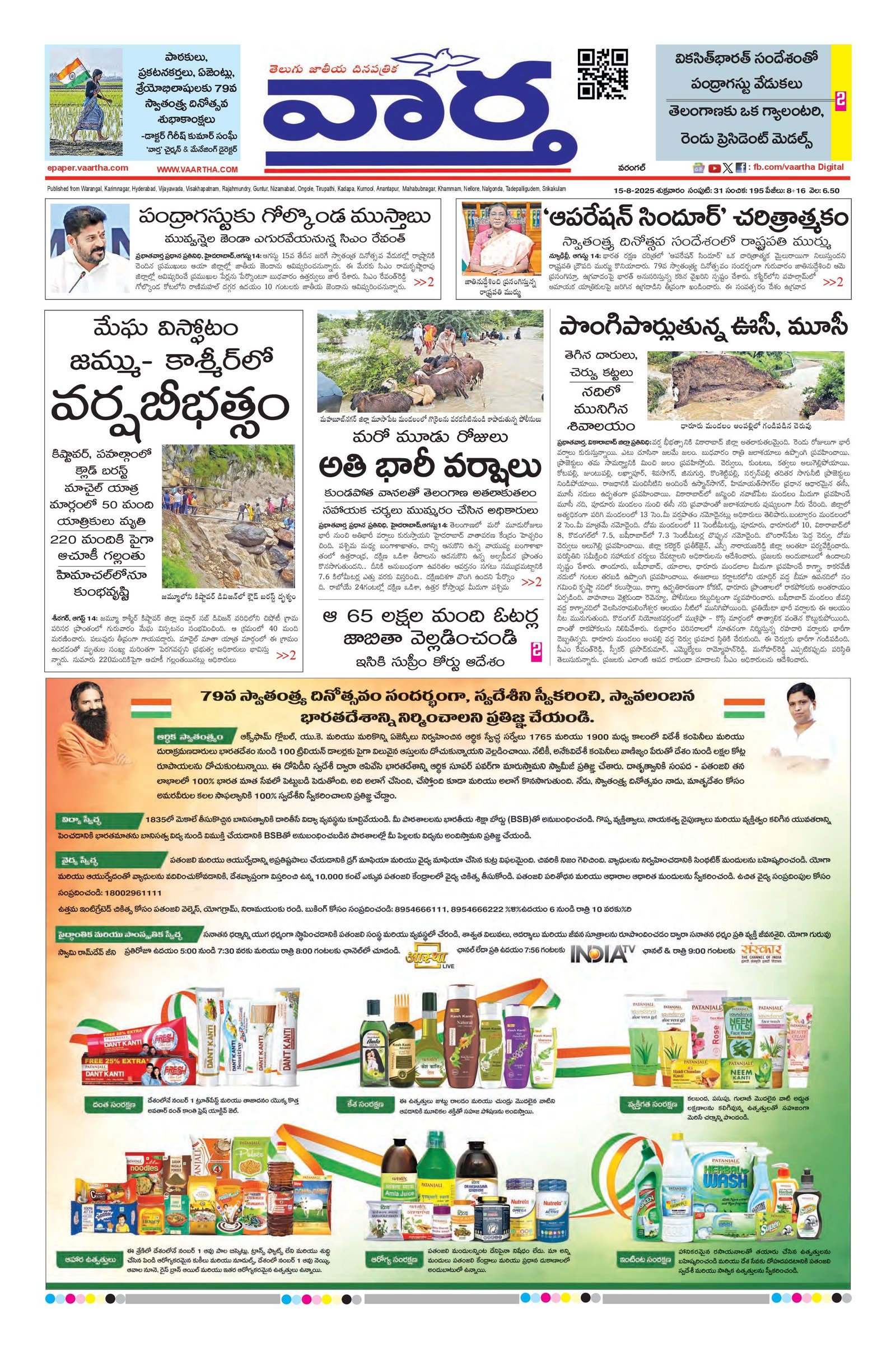 Warangal main - 15 Aug 2025 - - Page 1