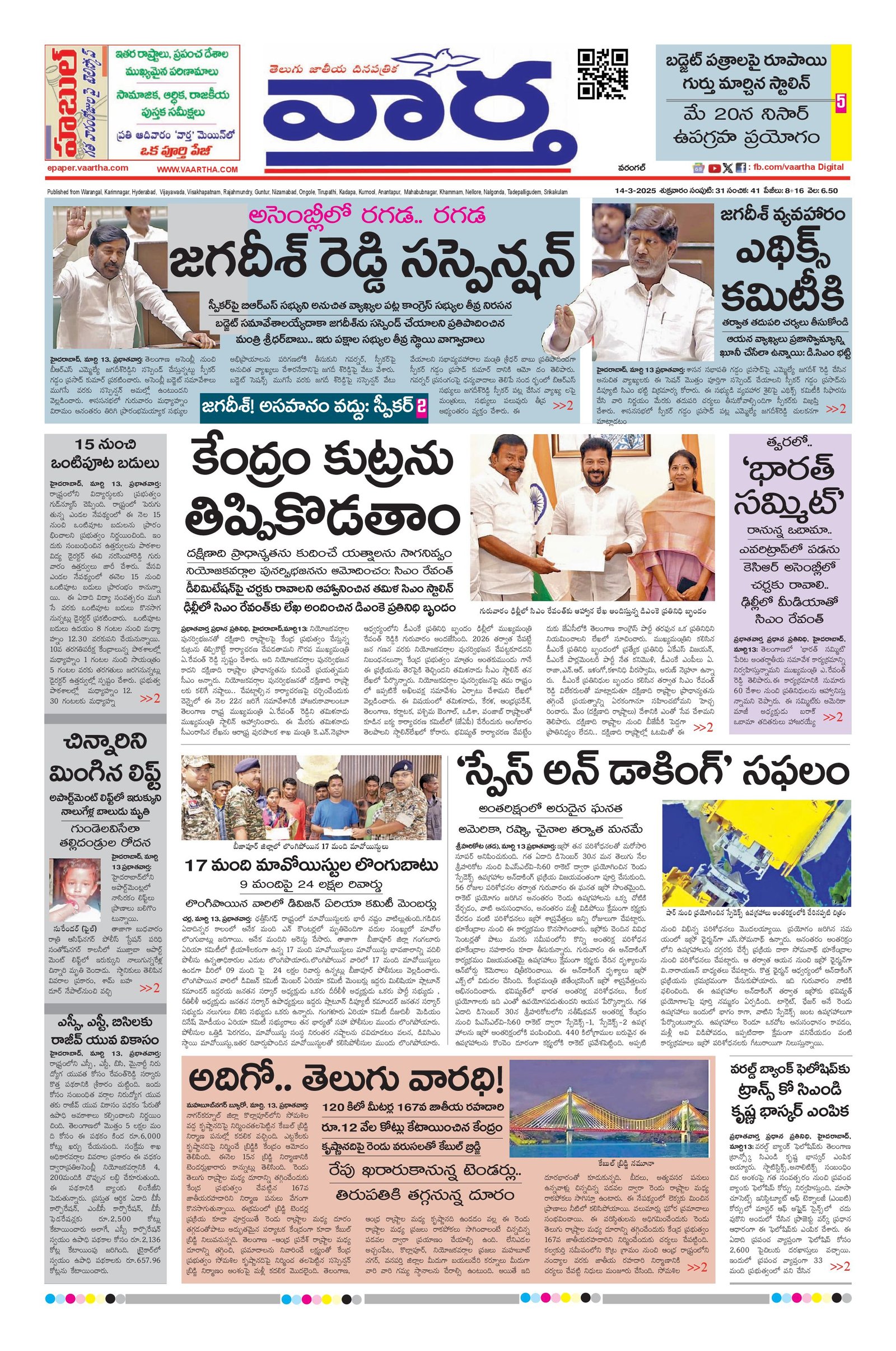 Warangal main - 14 Mar 2025 - - Page 1